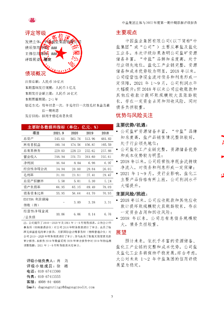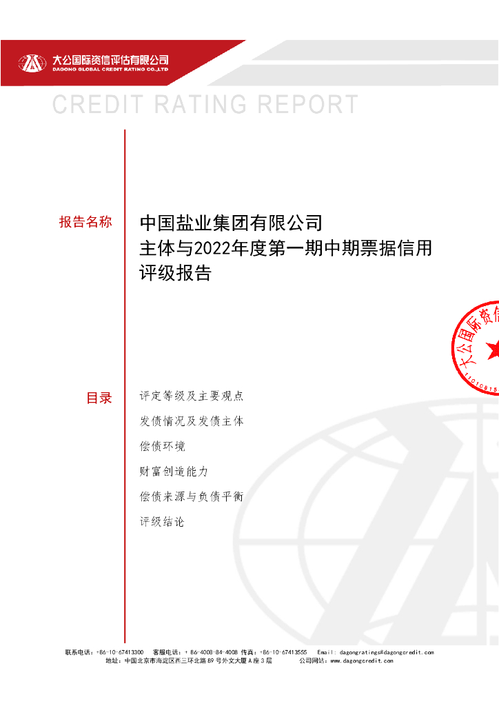 大公:中国盐业集团有限公司2022年度第一期中期票据信用评级报告.pdf