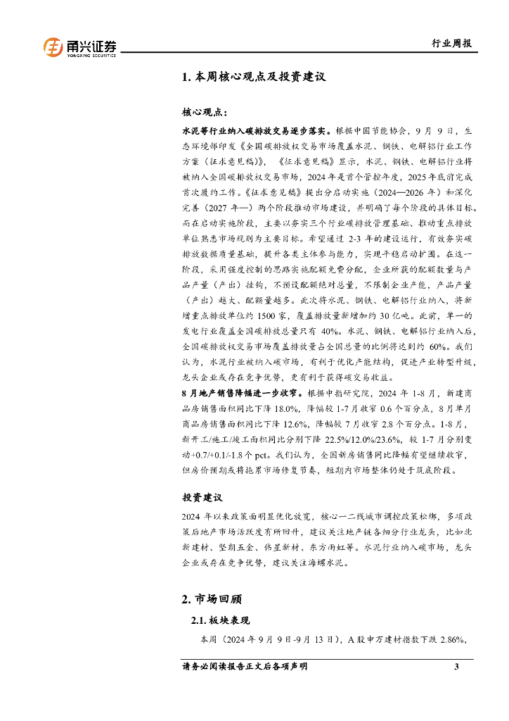 甬兴证券:建材行业周报:地产持续寻底,水泥即将纳入碳排放交易市场.pdf