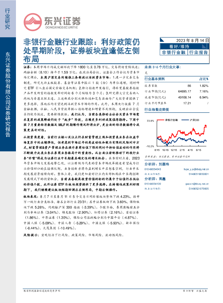东兴证券:非银行金融行业跟踪:利好政策仍处早期阶段,证券板块宜逢低左侧布局.pdf