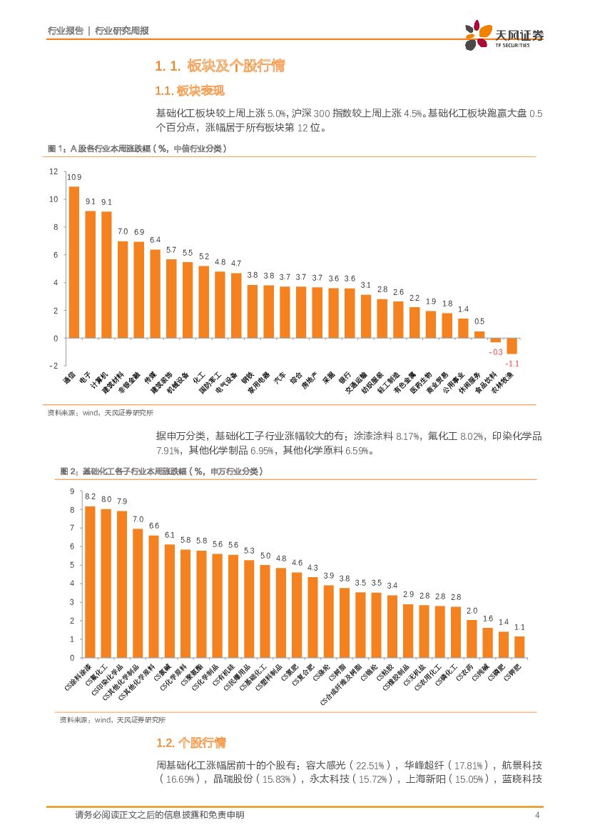 天风证券:化工行业研究周报:黄磷和甲醇上涨,氟化工产品下跌.pdf