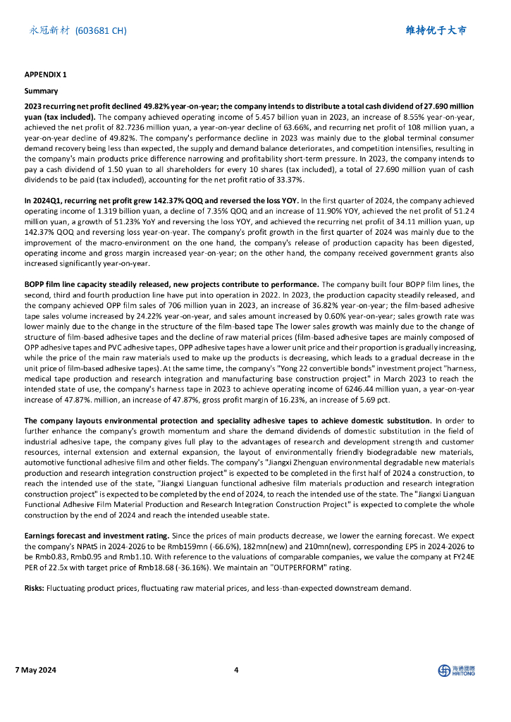 海通国际:永冠新材(603681)-2024Q1扣非后净利润同比扭亏,布局特种胶带实现国产替代.pdf