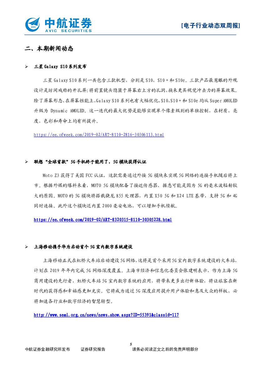 中航证券:电子行业动态双周报:5G手机将集体亮相巴塞罗那,手机市场即将迎来新春天.pdf
