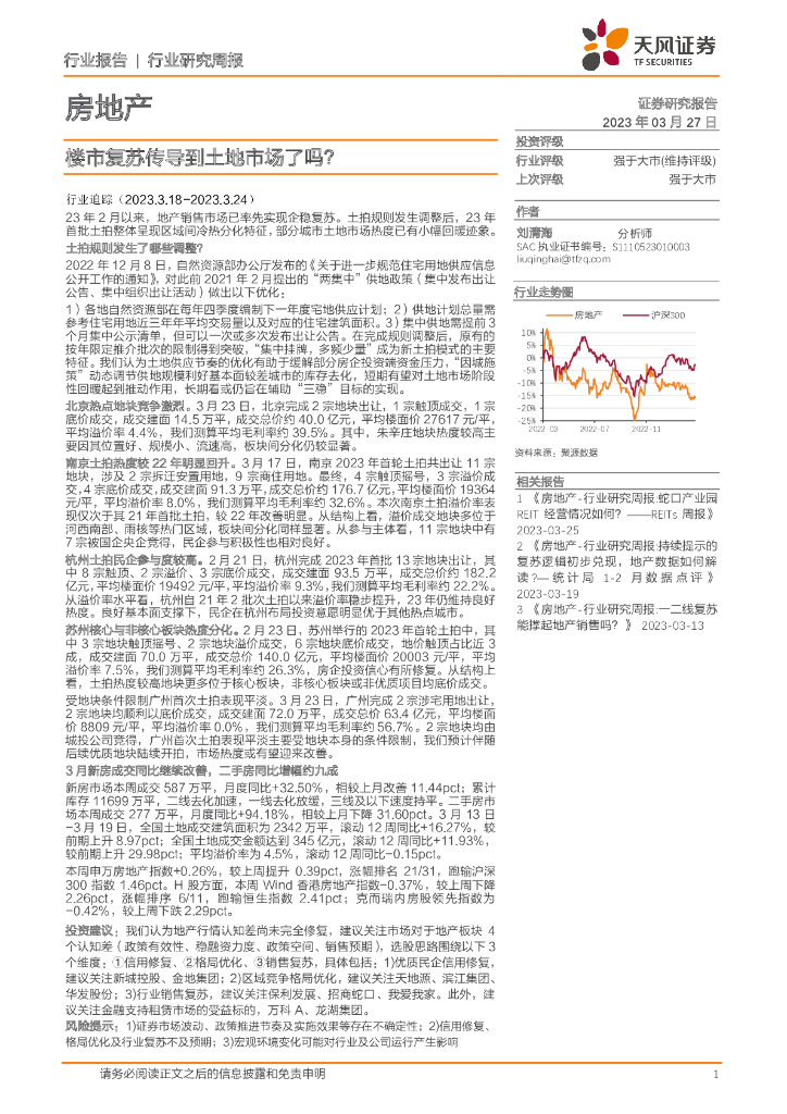 天风证券:房地产行业研究周报:楼市复苏传导到土地市场了吗?.pdf