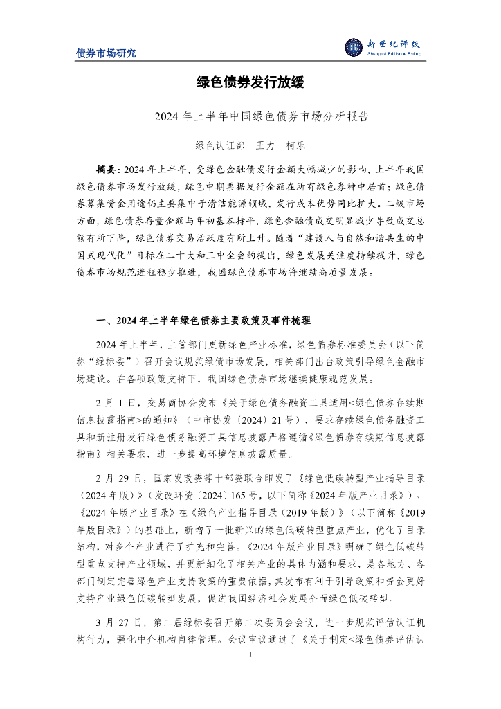 新世纪评级:绿色债券发行放缓——2024年上半年中国绿色债券市场分析报告.pdf