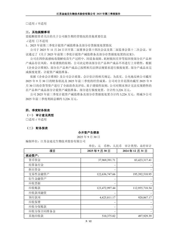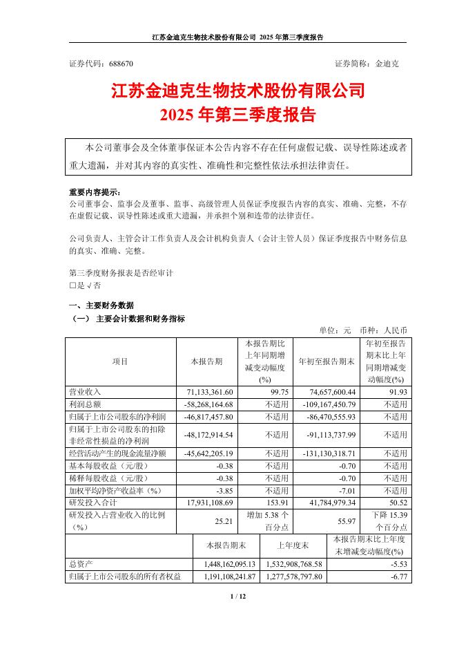 688670-金迪克:江苏金迪克生物技术股份有限公司2025年第三季度报告.pdf