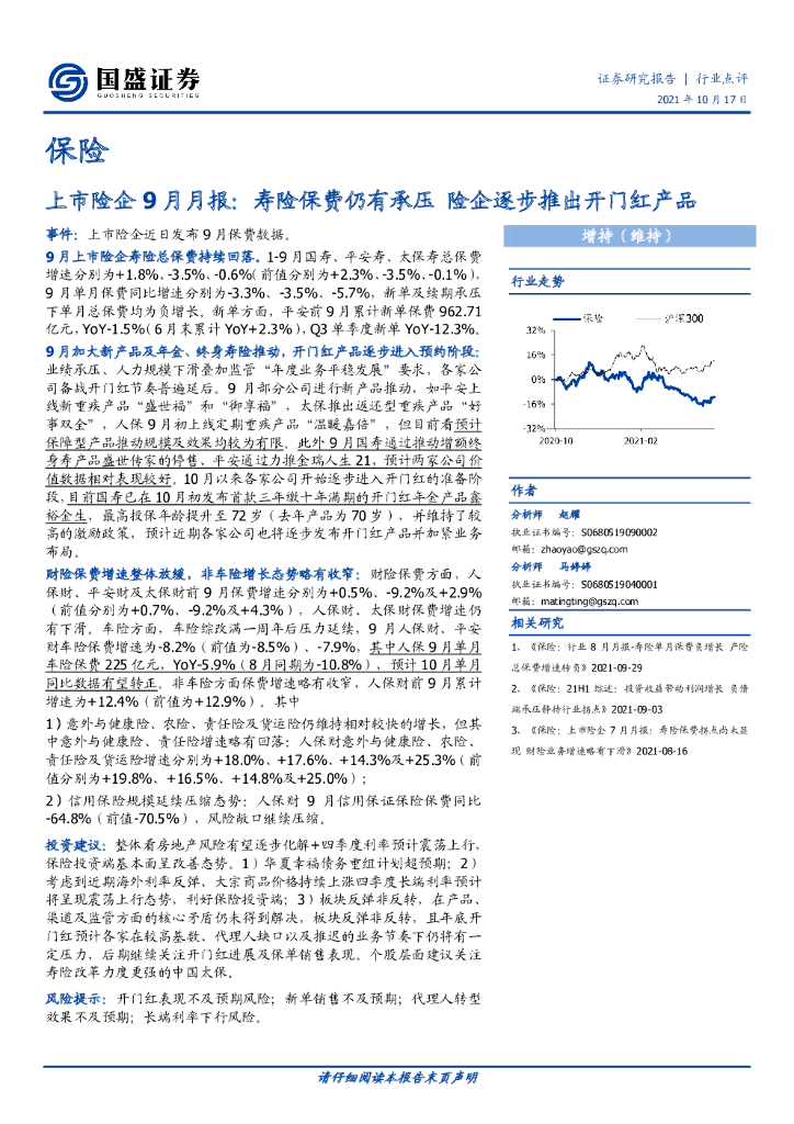 国盛证券:上市险企9月月报:寿险保费仍有承压 险企逐步推出开门红产品.pdf