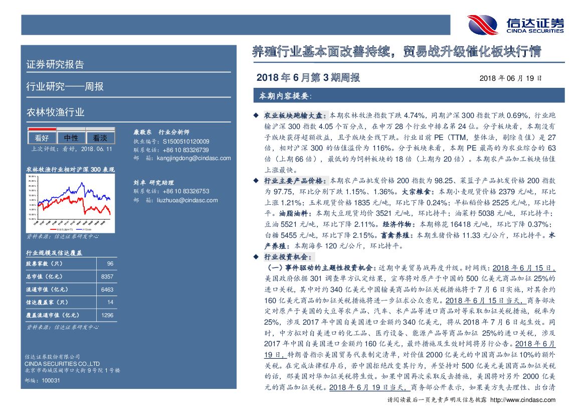 信达证券:农林牧渔2018年6月第3期周报:养殖行业基本面改善持续,贸易战升级催化板块行情.pdf