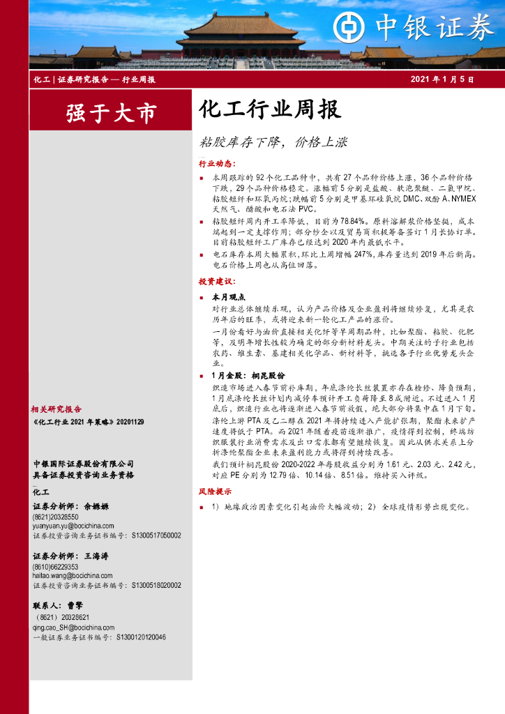 中银证券:化工行业周报:粘胶库存下降,价格上涨.pdf
