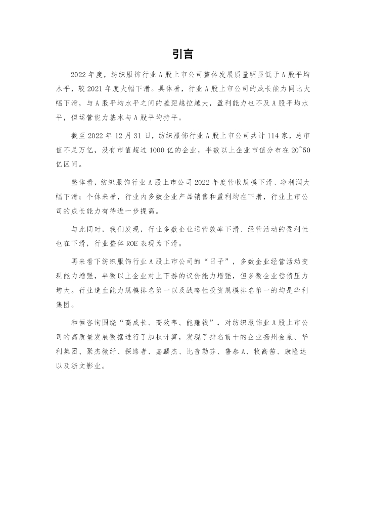 和恒咨询:纺织服饰行业A股上市公司高质量发展报告(2022年报).pdf