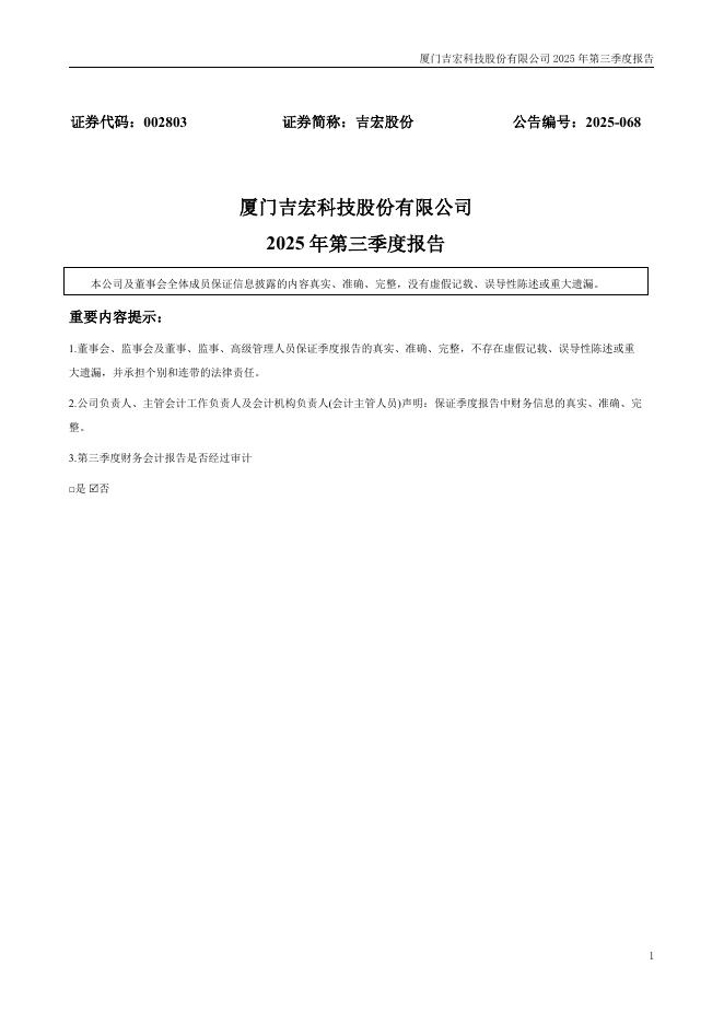 002803-吉宏股份:2025年三季度报告.pdf