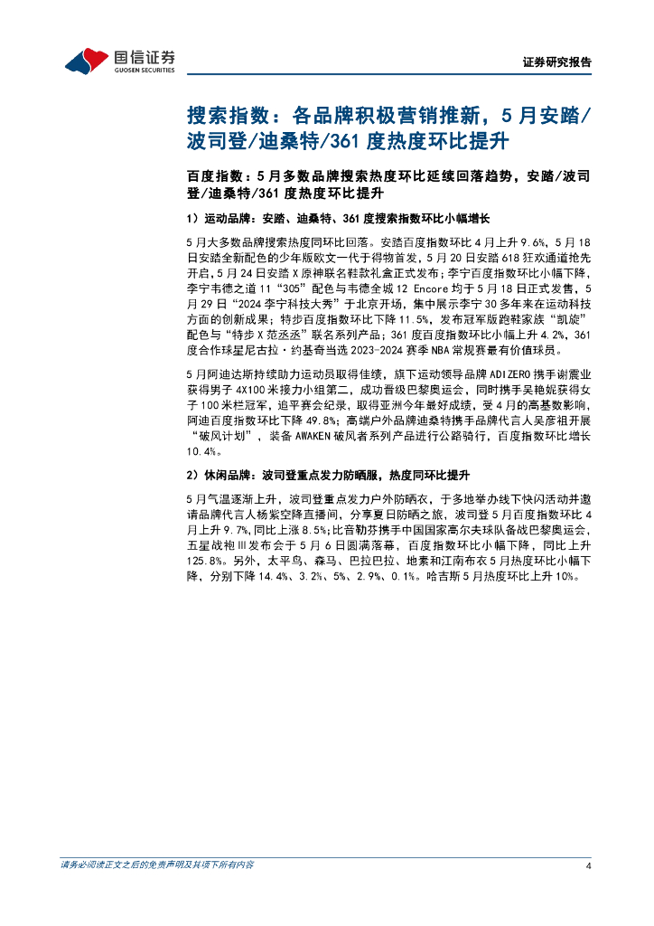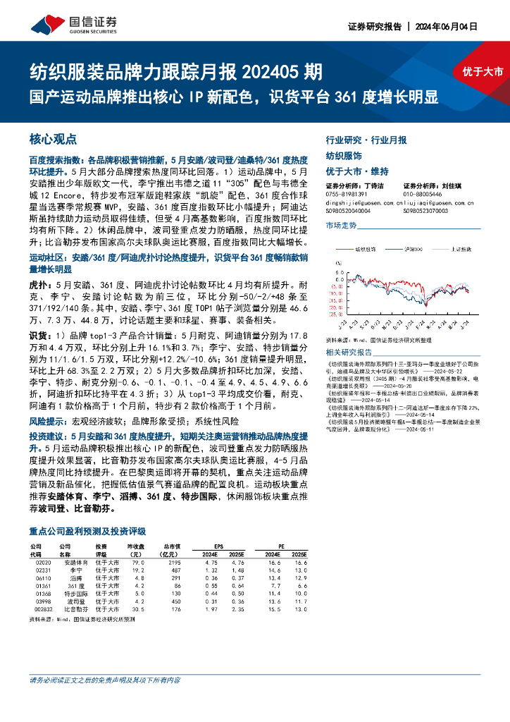国信证券:纺织服装品牌力跟踪月报202405期:国产运动品牌推出核心IP新配色,识货平台361度增长明显.pdf