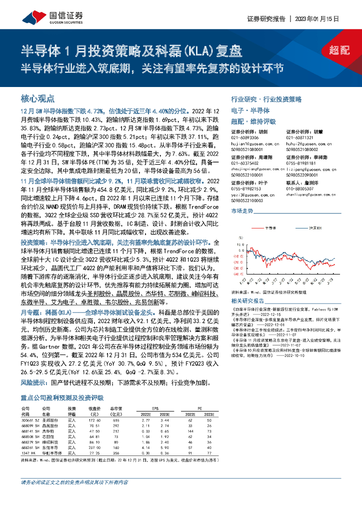 国信证券:半导体1月投资策略及科磊(KLA)复盘:半导体行业进入筑底期,关注有望率先复苏的设计环节.pdf