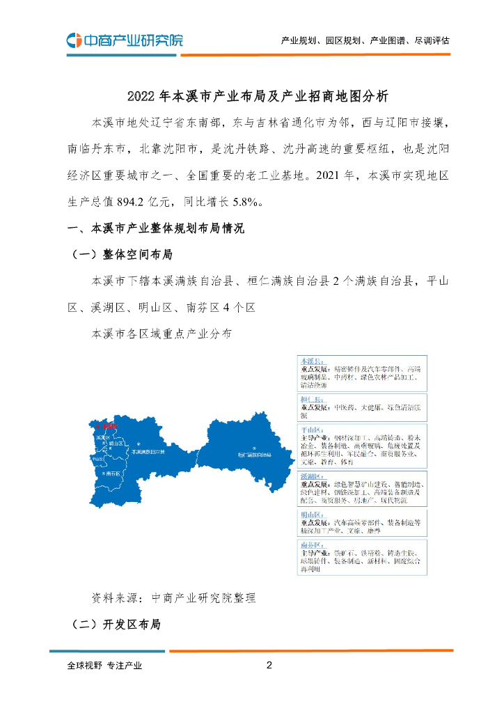 中商产业研究院:2022年本溪市产业布局及产业招商地图分析.pdf