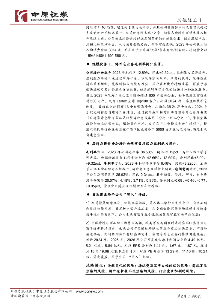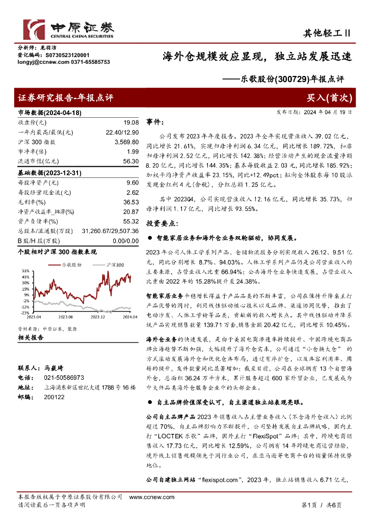 中原证券:乐歌股份(300729)-年报点评:海外仓规模效应显现,独立站发展迅速.pdf