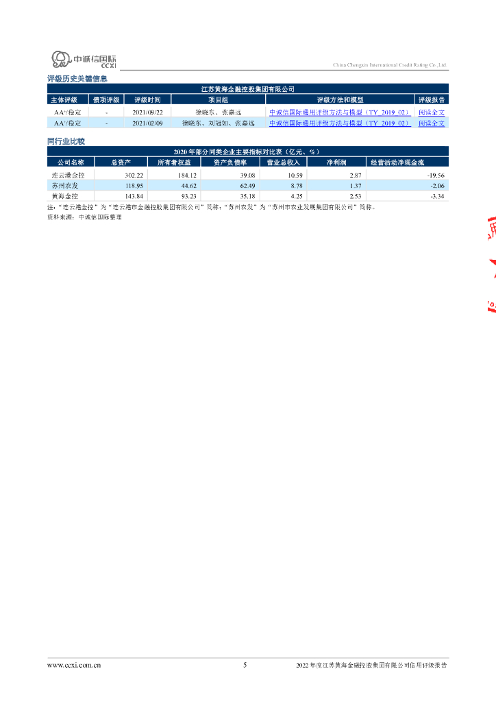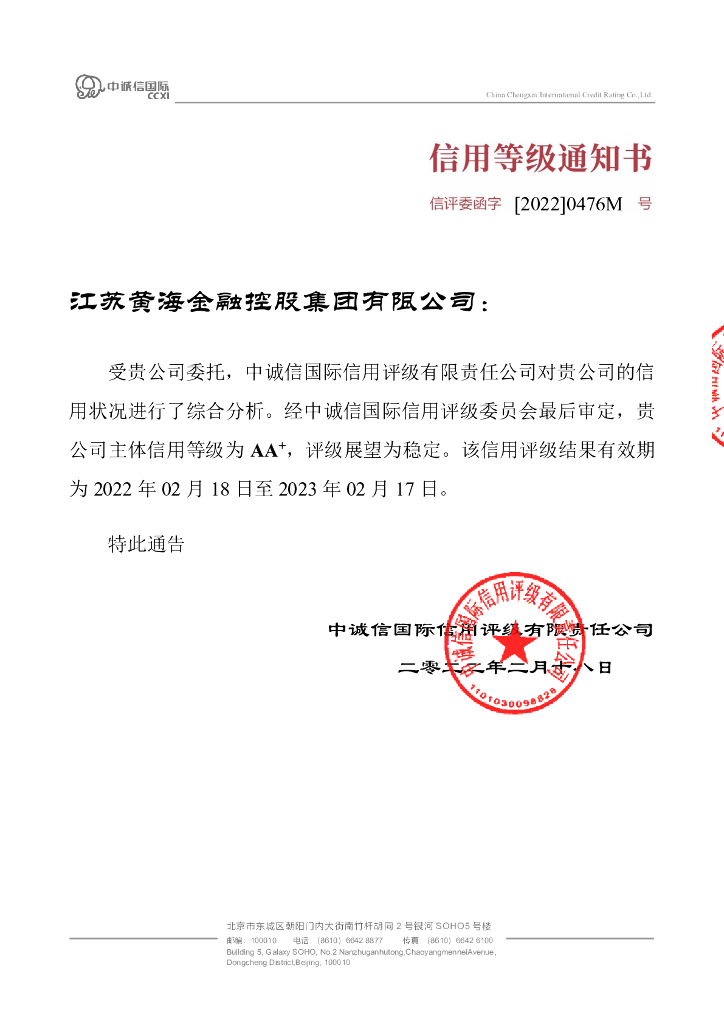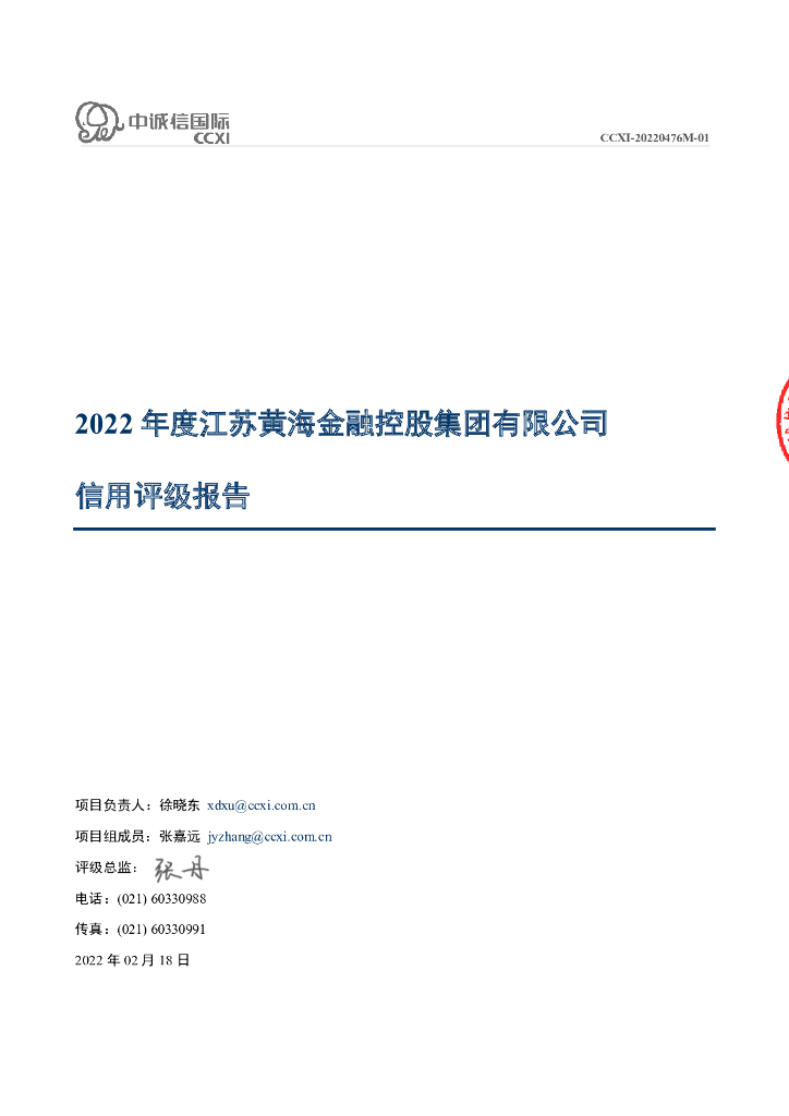 中诚信:江苏黄海金融控股集团有限公司主体信用评级报及跟踪评级安排.pdf