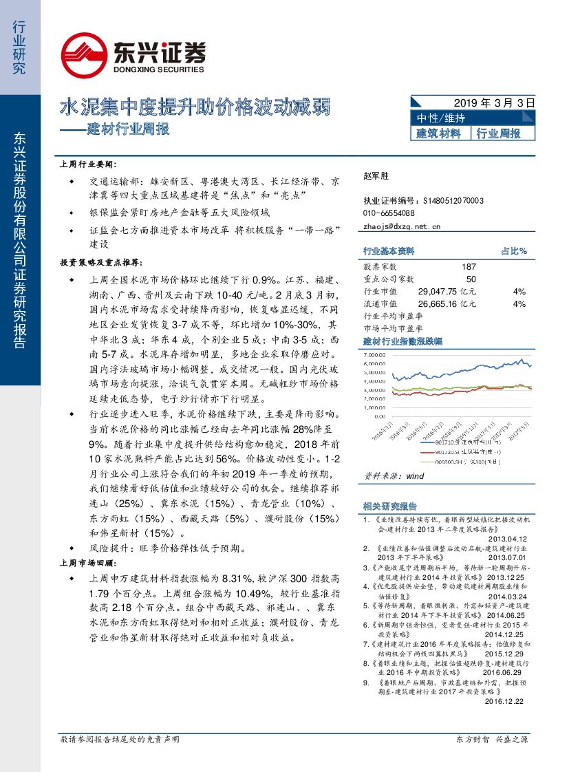 东兴证券:建材行业周报:水泥集中度提升助价格波动减弱.pdf