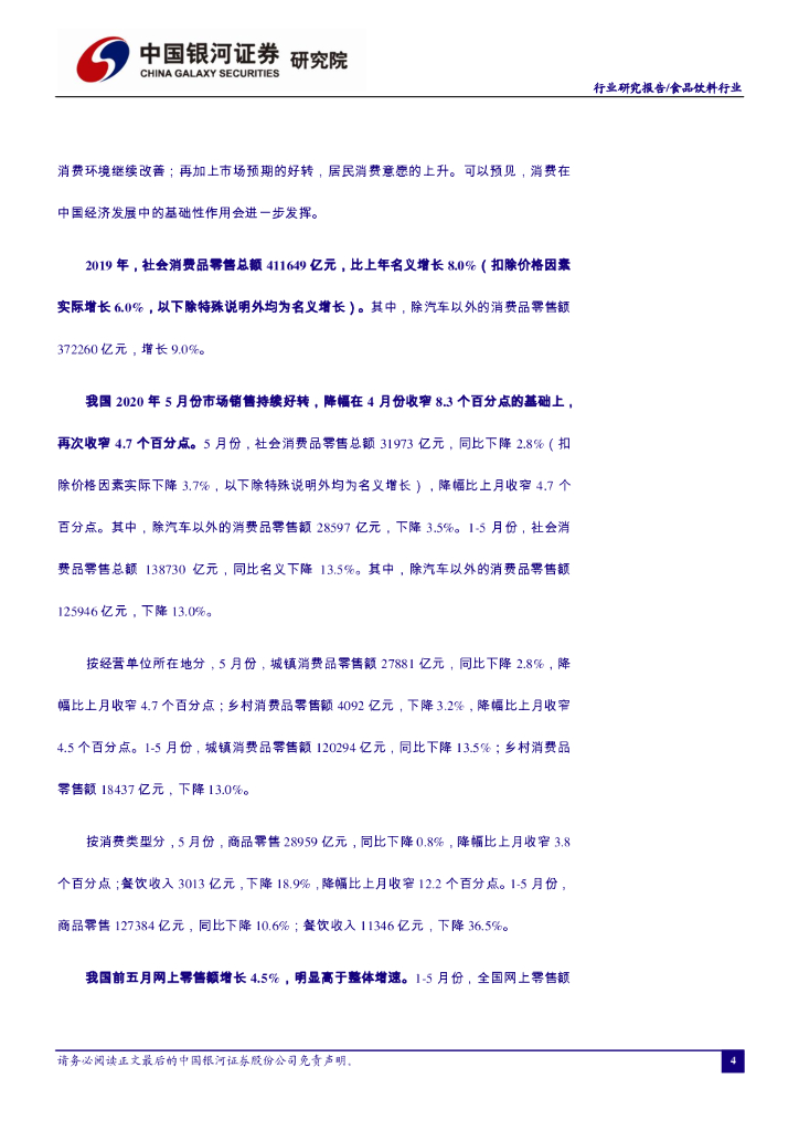 中国银河:食品饮料行业:下游餐饮经营改善,饮料、烟酒类零售额稳步恢复.pdf
