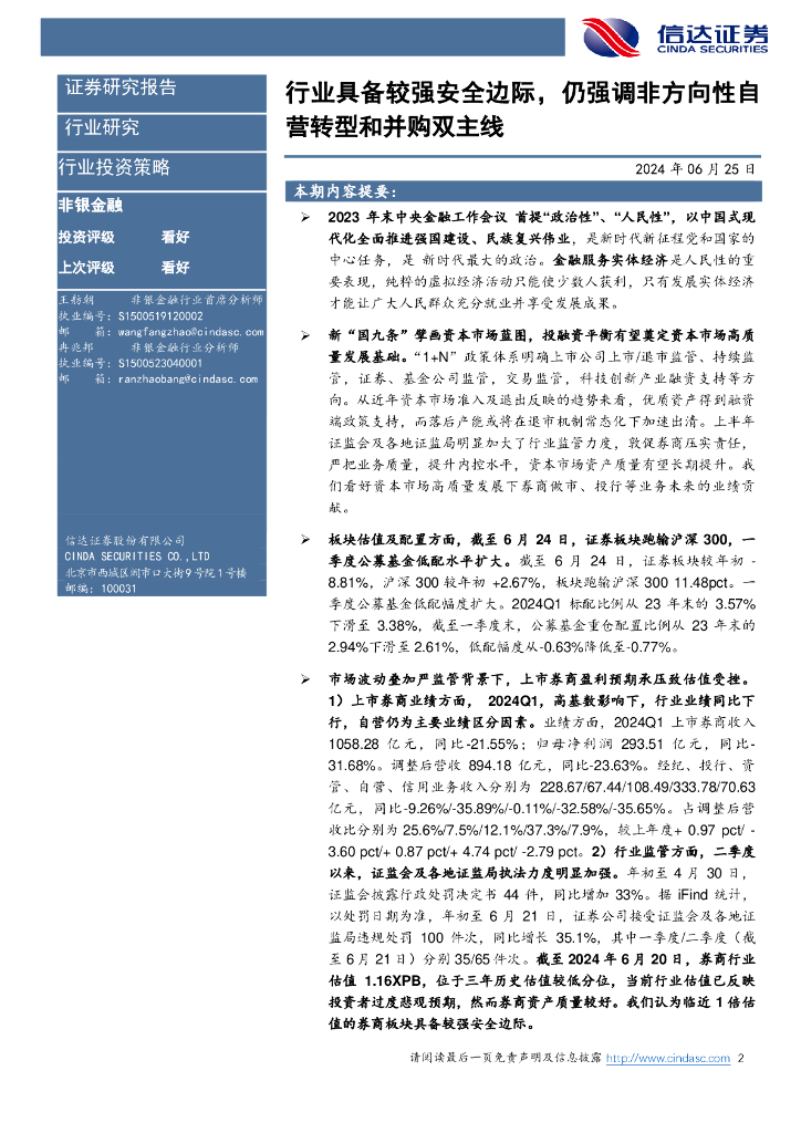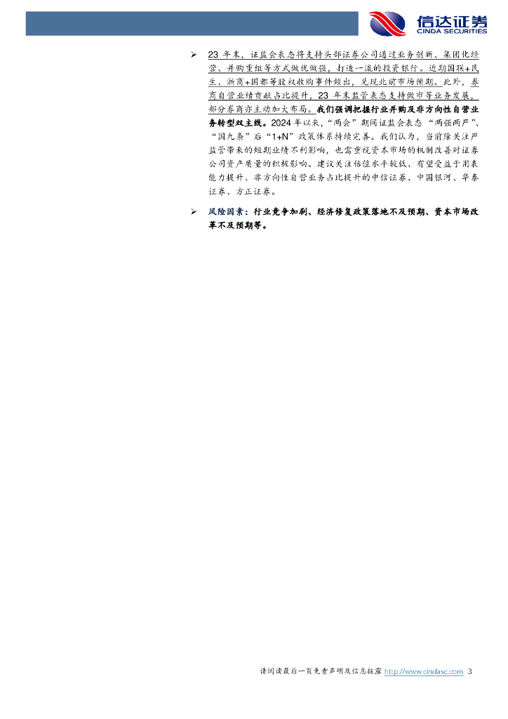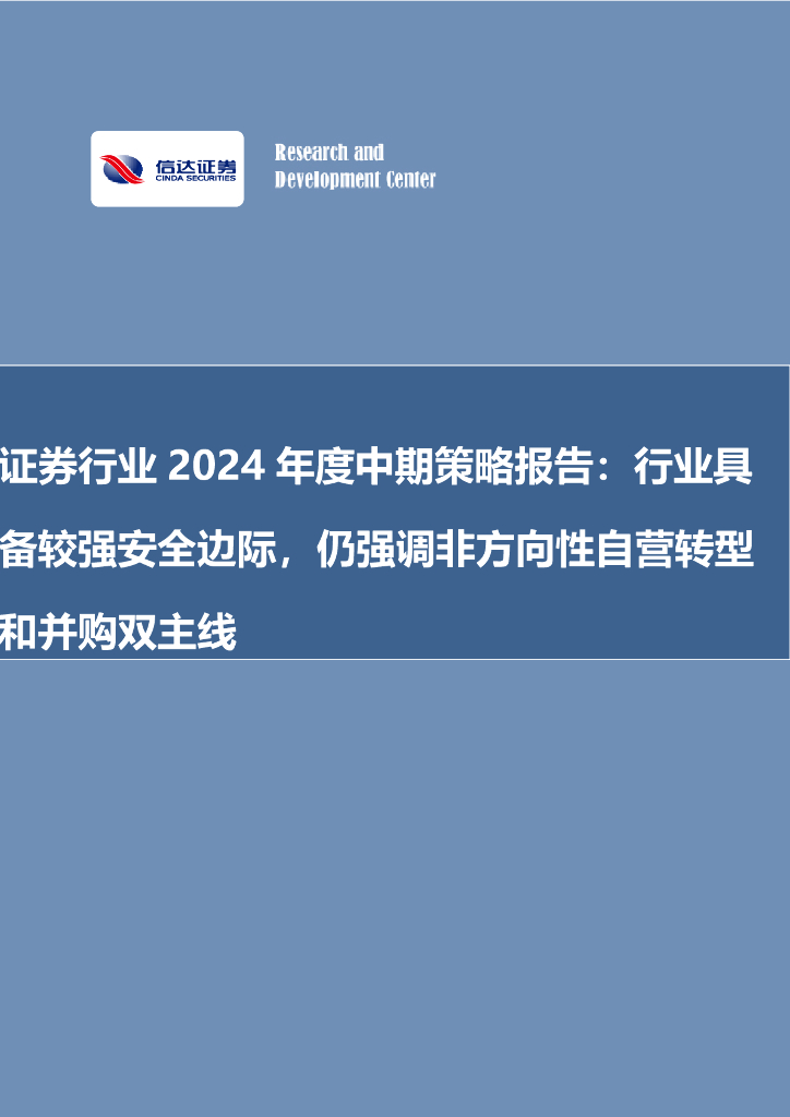 信达证券:证券行业2024年度中期策略报告:行业具备较强安全边际,仍强调非方向性自营转型和并购双主线.pdf
