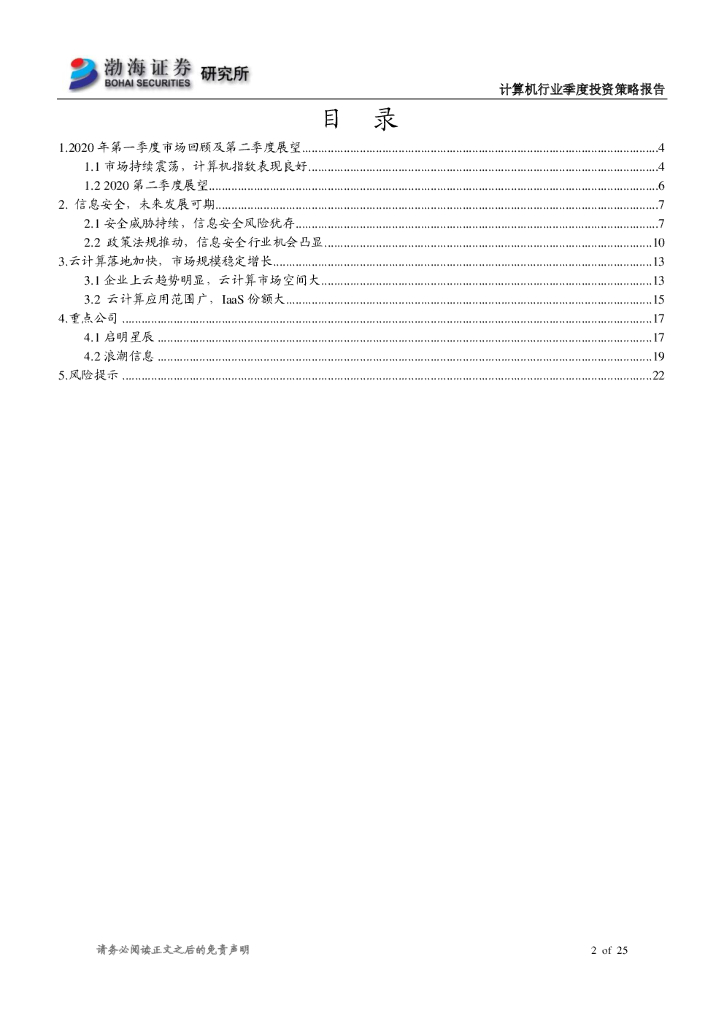渤海证券:计算机行业2020年第二季度投资策略报告:科技新基建,关注云计算和信息安全.pdf