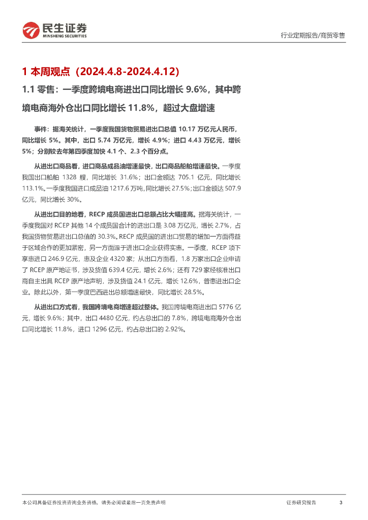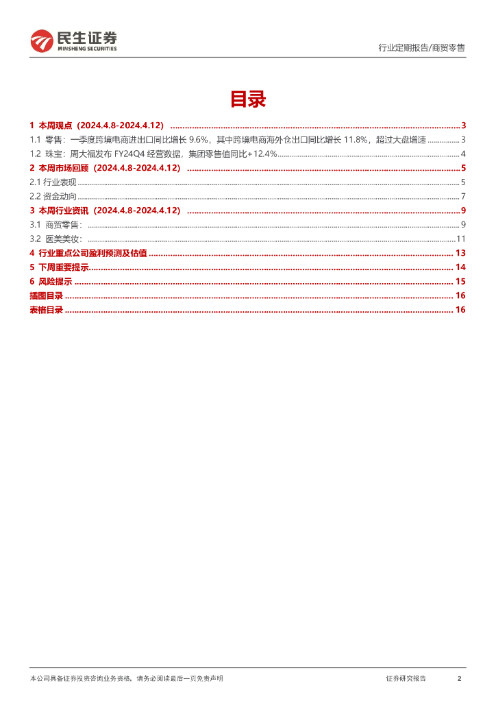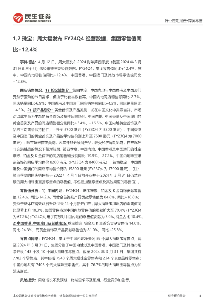 民生证券:零售周观点:周大福发布FY24Q4经营数据,一季度跨境电商进出口额维持高增.pdf