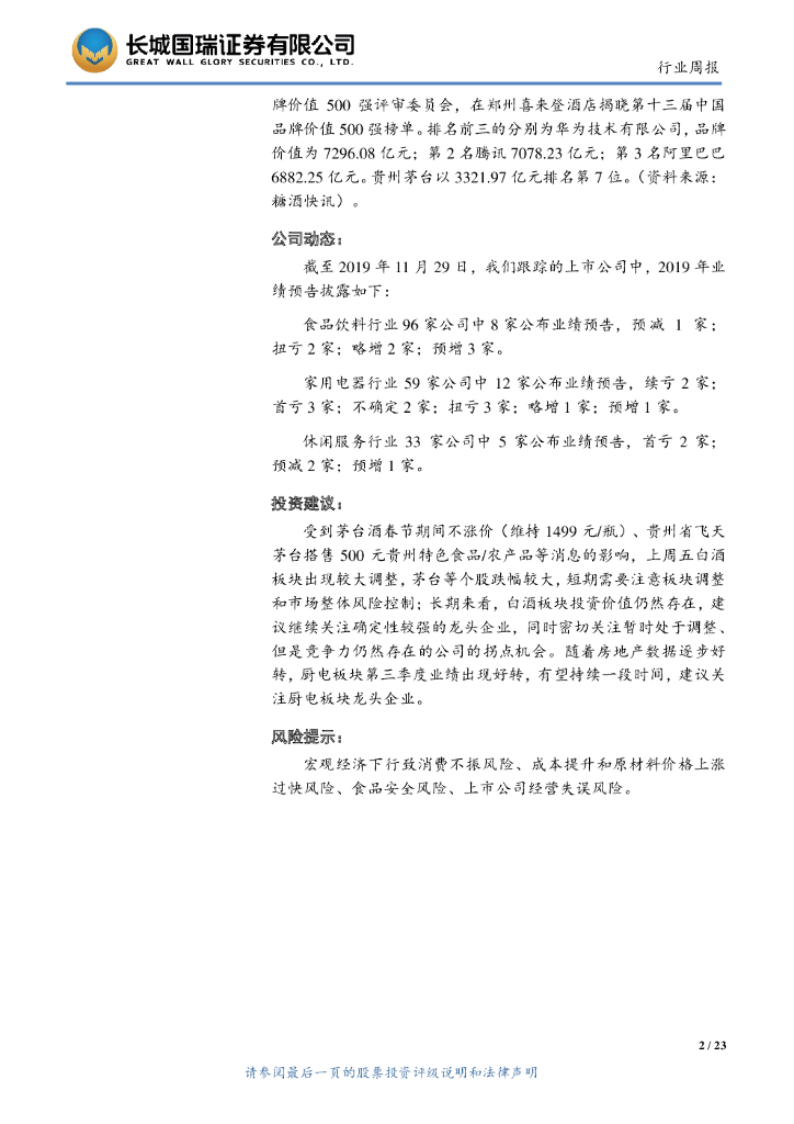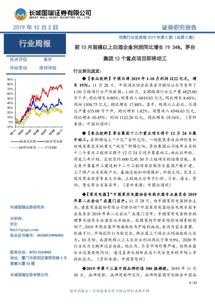 长城国瑞证券:消费行业双周报2019年第5期(总第5期):前10月规模以上白酒企业利润同比增长19.34%,茅台集团12个重点项目即将动工.pdf