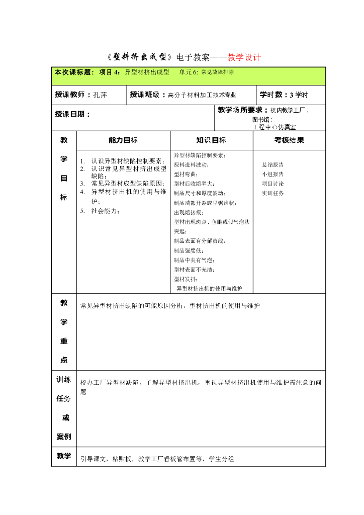 《塑料挤出成型》电子教案-单元6:常见故障排除.pdf