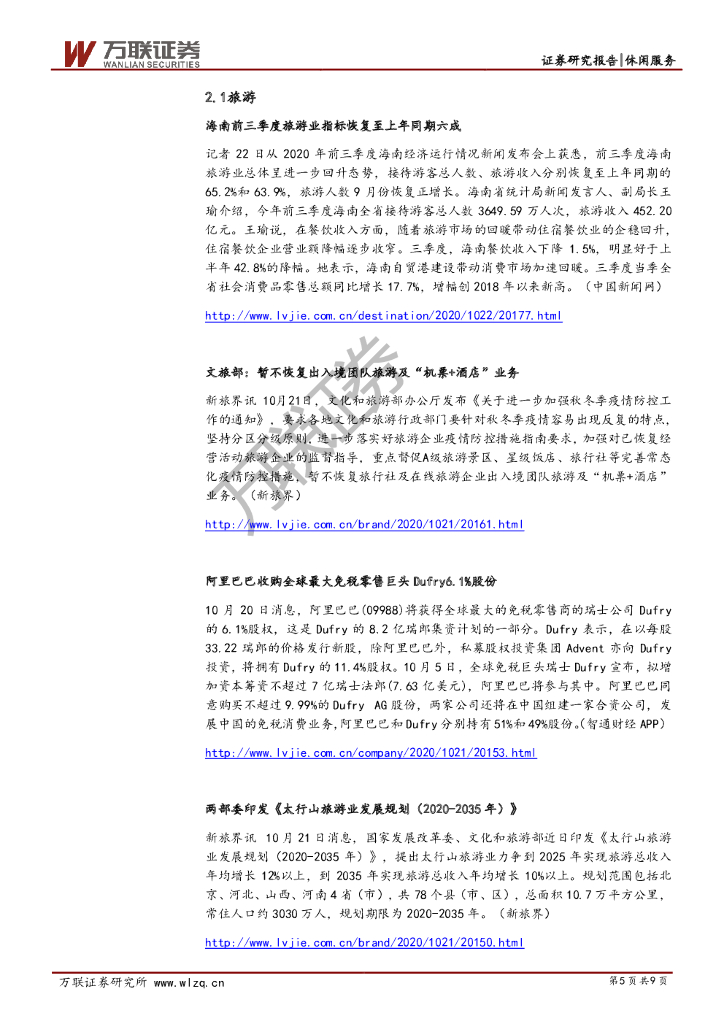 万联证券:休闲服务行业周观点报告:海南前三季度旅游业恢复六成,新东方香港二次上市过聆讯.pdf