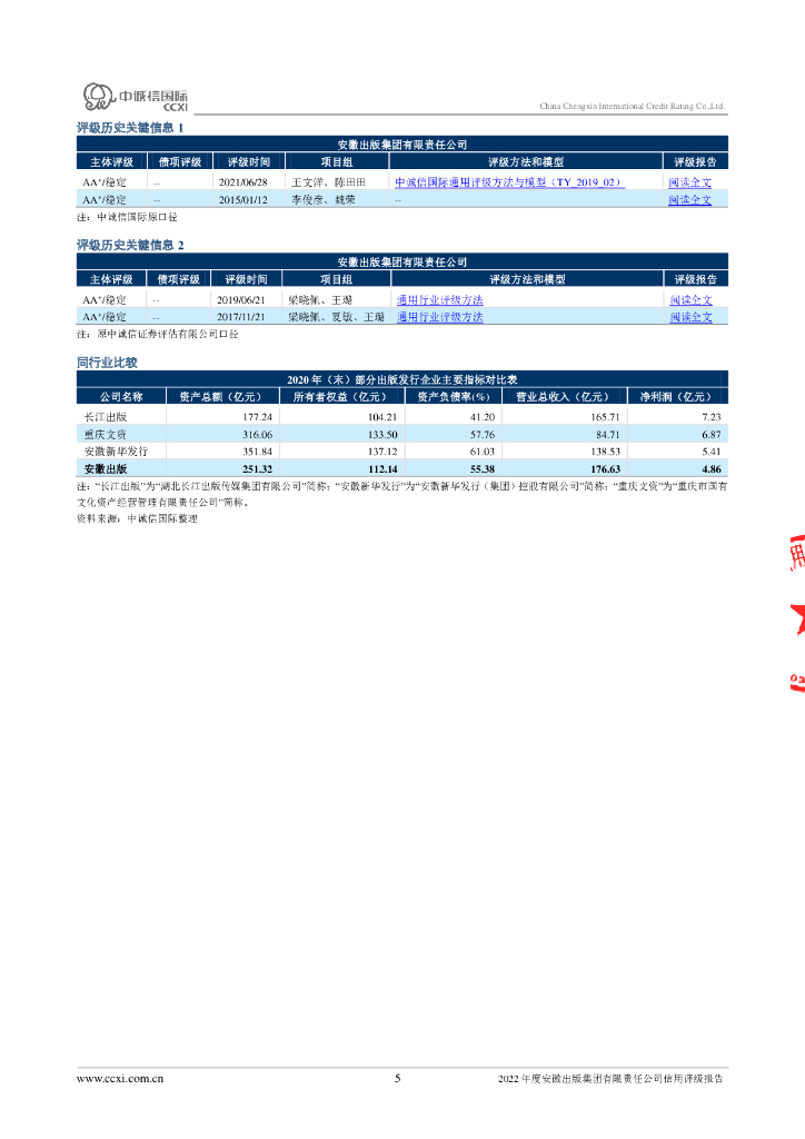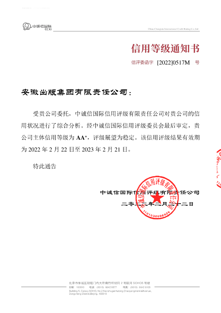 中诚信:安徽出版集团有限责任公司信用评级报告.pdf