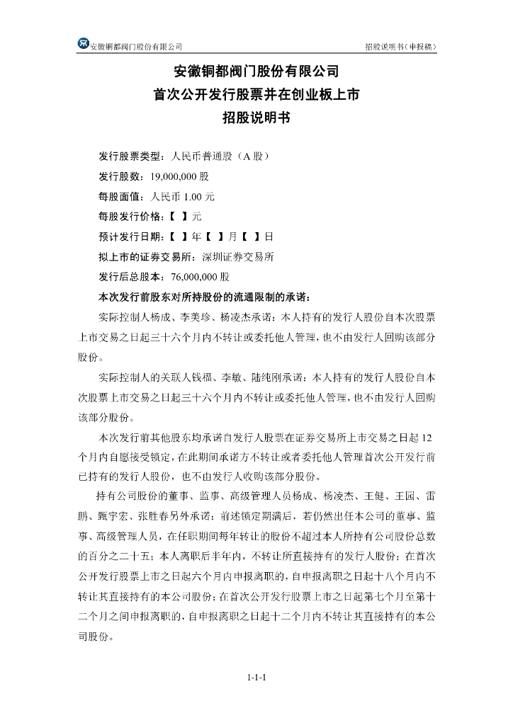 安徽铜都阀门股份有限公司深交所创业板IPO上市招股说明书.pdf