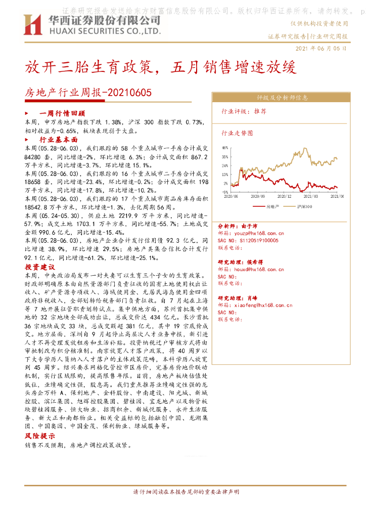 华西证券:房地产行业周报:放开三胎生育政策,五月销售增速放缓.pdf