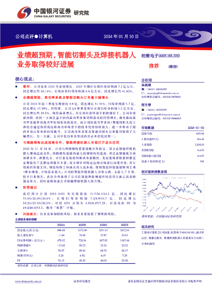 中国银河:柏楚电子(688188)-业绩超预期,智能切割头及焊接机器人业务取得较好进展.pdf