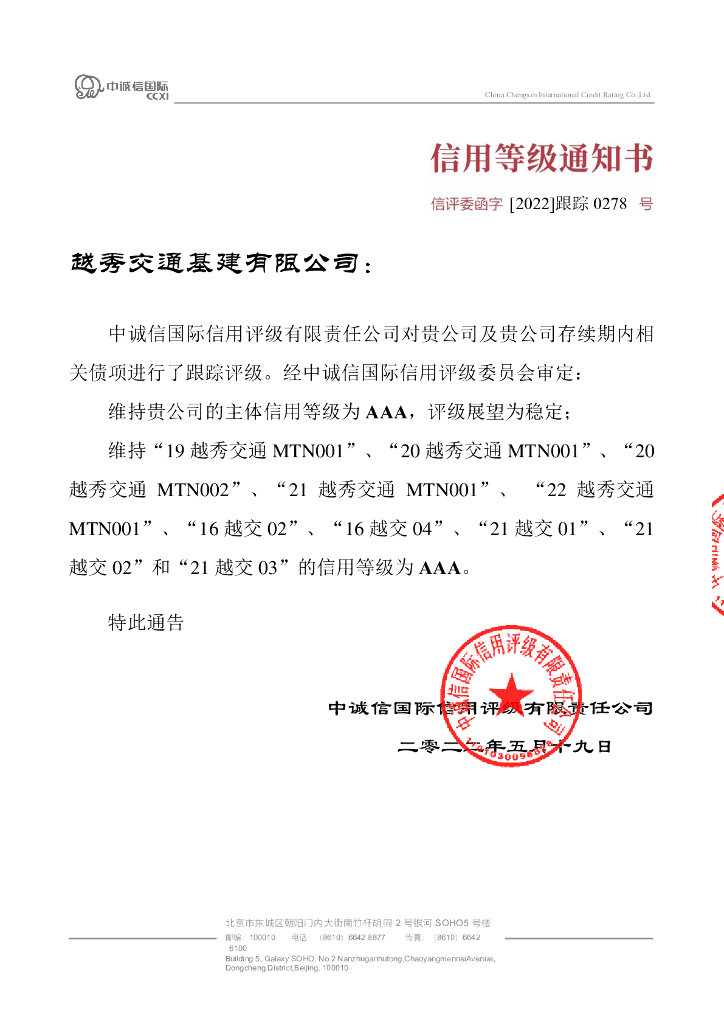 中诚信:越秀交通基建有限公司2022年度跟踪评级报告.pdf