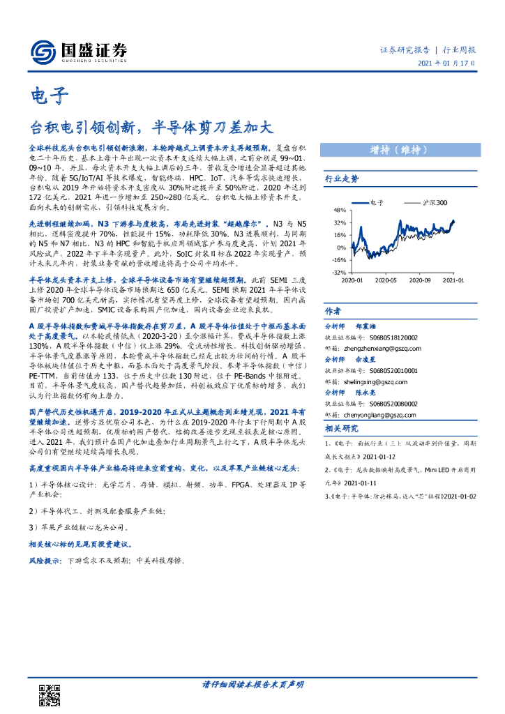 国盛证券:电子行业周报:台积电引领创新,半导体剪刀差加大.pdf
