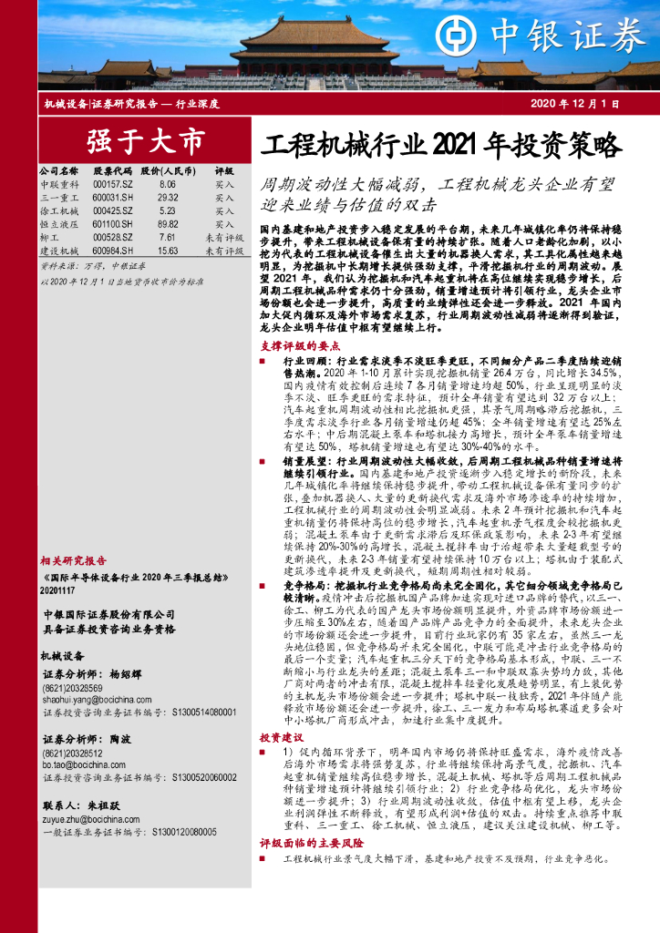 中银证券:工程机械行业2021年投资度策略:周期波动性大幅减弱,工程机械龙头企业有望迎来业绩与估值的双击.pdf
