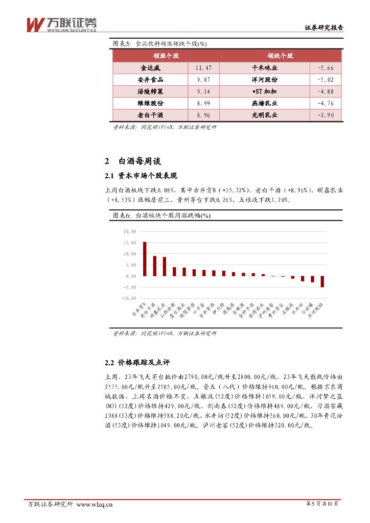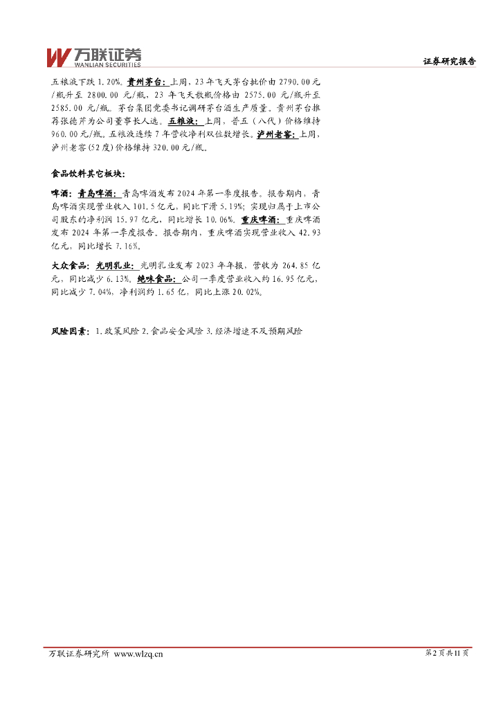 万联证券:食品饮料行业周观点:业绩披露完毕,飞天茅台批价回升.pdf