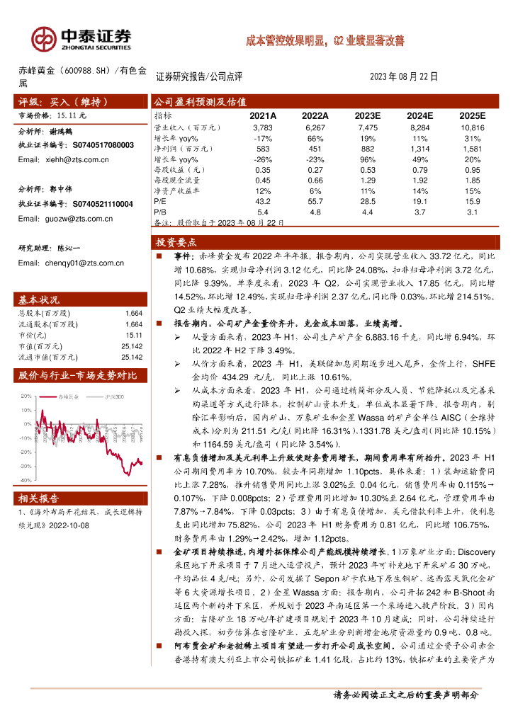 中泰证券:赤峰黄金(600988)-成本管控效果明显,Q2业绩显著改善.pdf