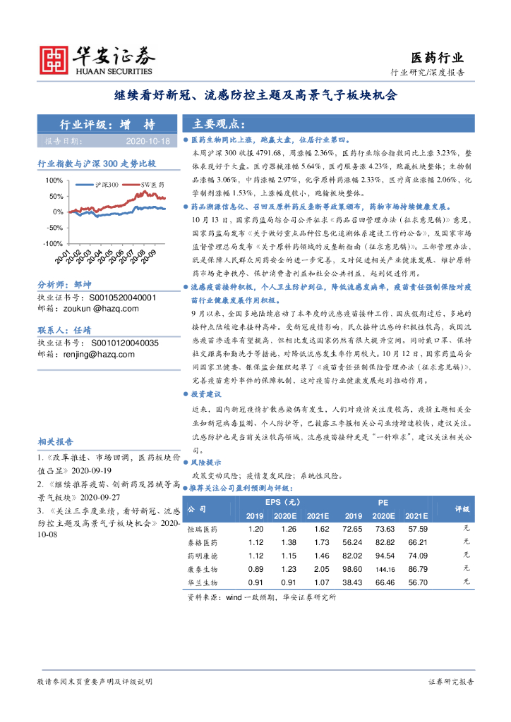 华安证券:医药行业:继续看好新冠、流感防控主题及高景气子板块机会.pdf