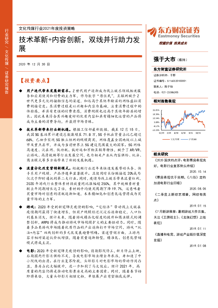 东方财富证券:文化传媒行业2021年度投资策略:技术革新+内容创新,双线并行助力发展.pdf