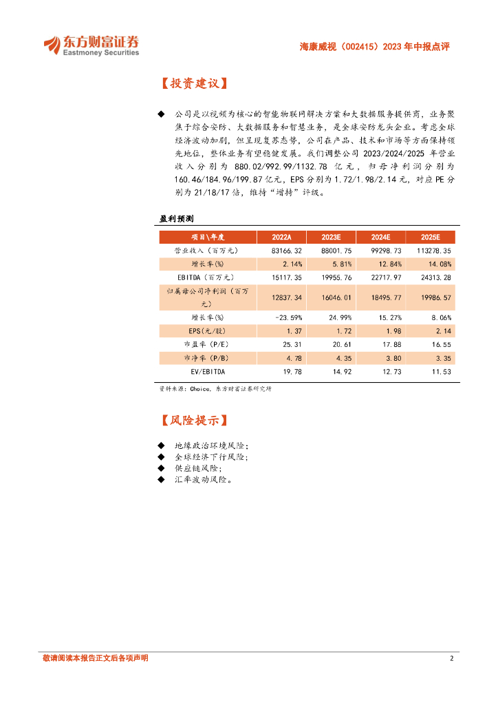 东方财富证券:海康威视(002415)-2023年中报点评:Q2净利润同比回正,创新业务彰显韧性.pdf