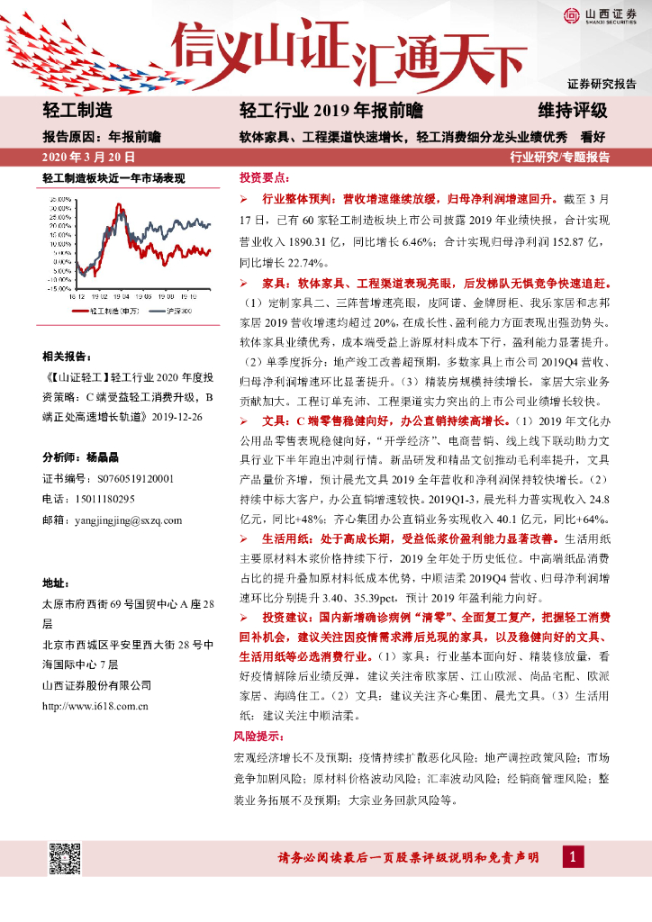 山西证券:轻工行业2019年报前瞻:软体家具、工程渠道快速增长,轻工消费细分龙头业绩优秀.pdf