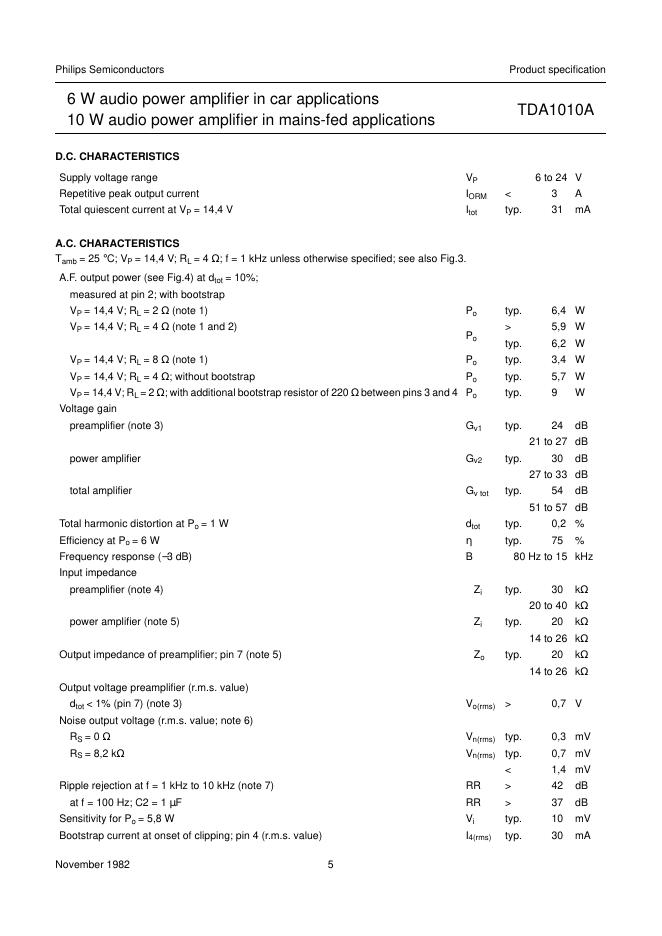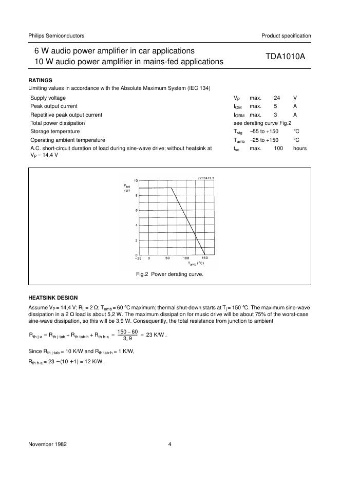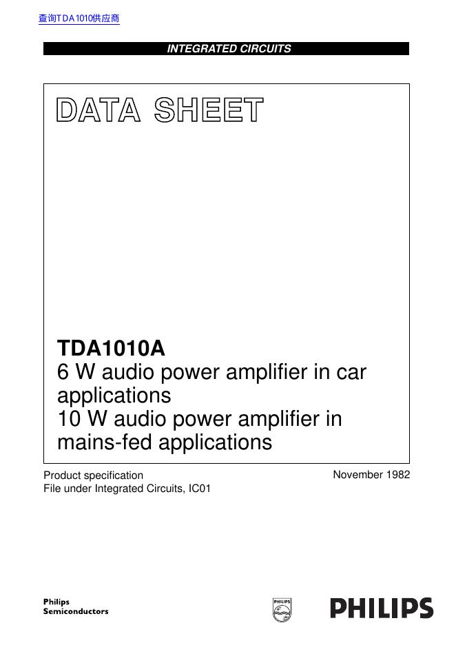 PHILIPS TDA1010A 6 W audio power amplifier in car applications 10 W audio power amplifier in mains-fed applications 数据手册.pdf