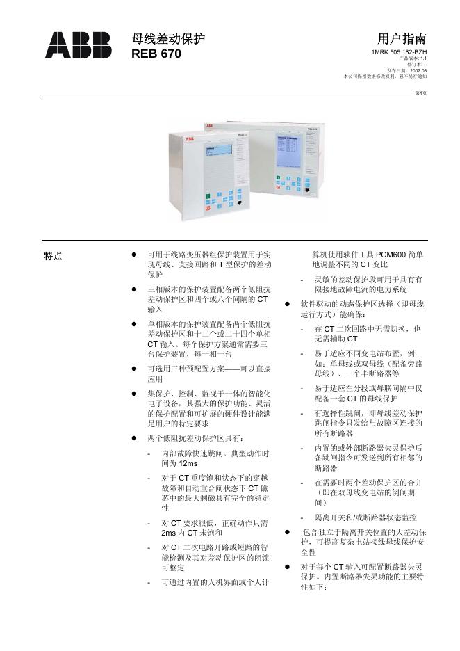 ABB 母线差动保护REB670 用户指南.pdf