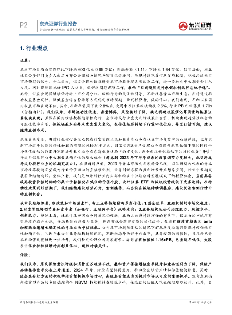 东兴证券:非银行金融行业跟踪:监管发声稳定市场预期,建议继续左侧布局证券板块.pdf