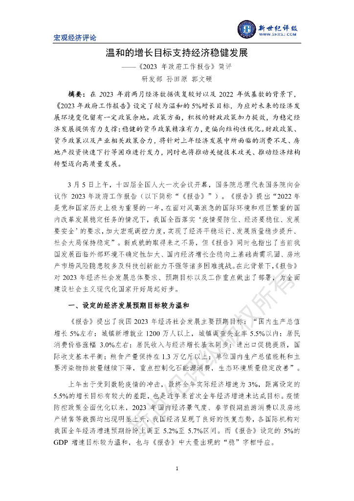 新世纪评级:温和的增长目标支持经济稳健发展——《2023年政府工作报告》简评.pdf