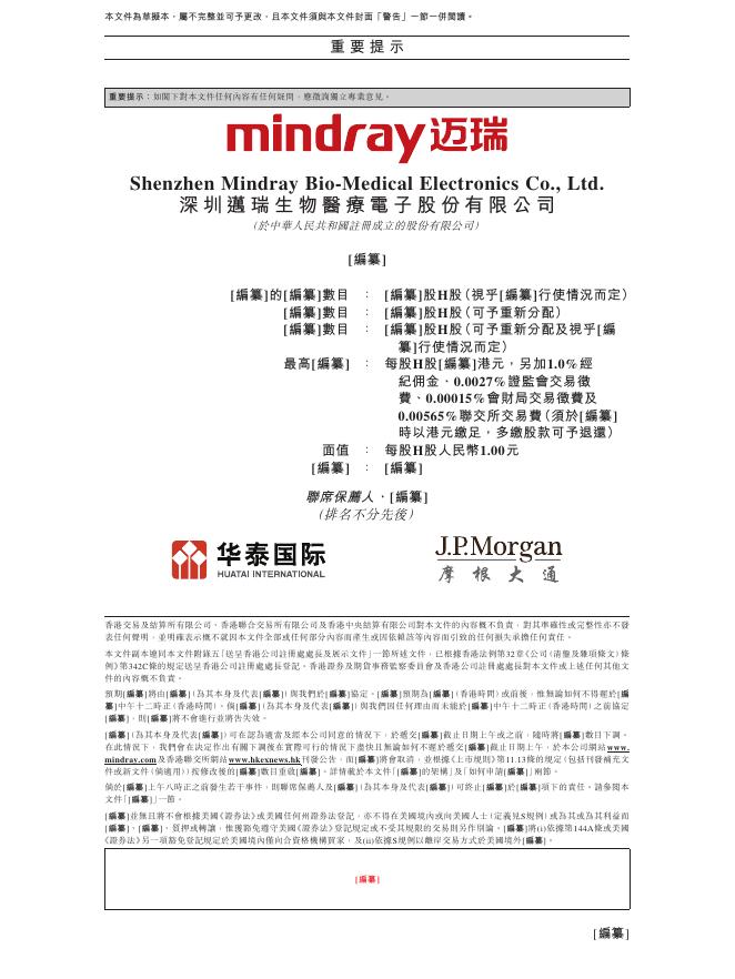 深圳迈瑞生物医疗电子股份有限公司港交所IPO上市招股说明书.pdf