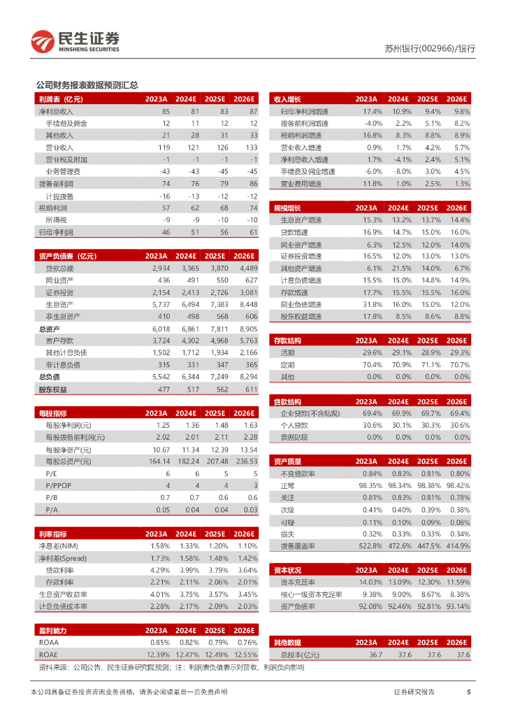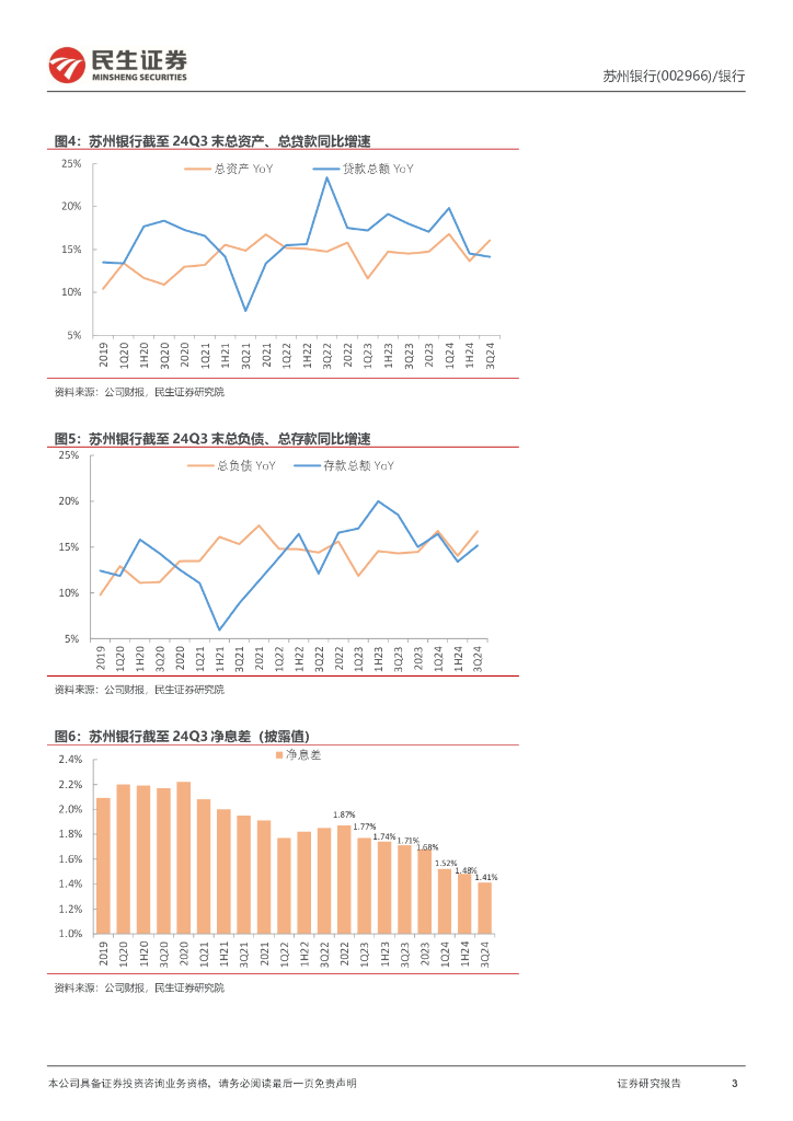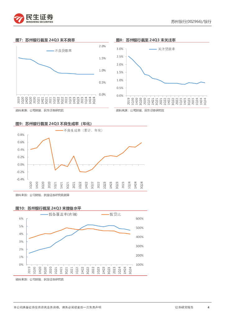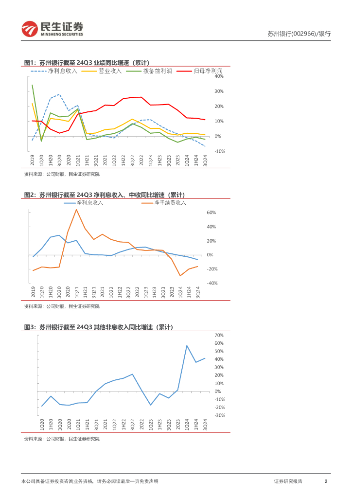 民生证券:苏州银行(002966)-2024年三季报点评:盈利稳健增长,资产质量优异.pdf