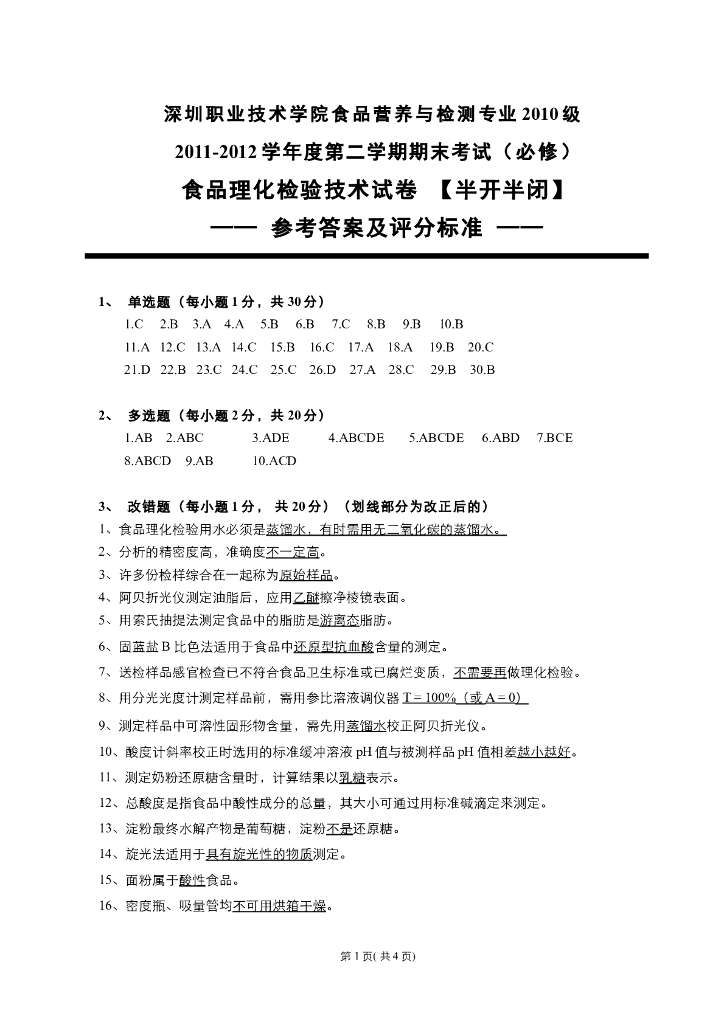 《食品检验》食品理化检验技术-理论部分试卷答案.pdf
