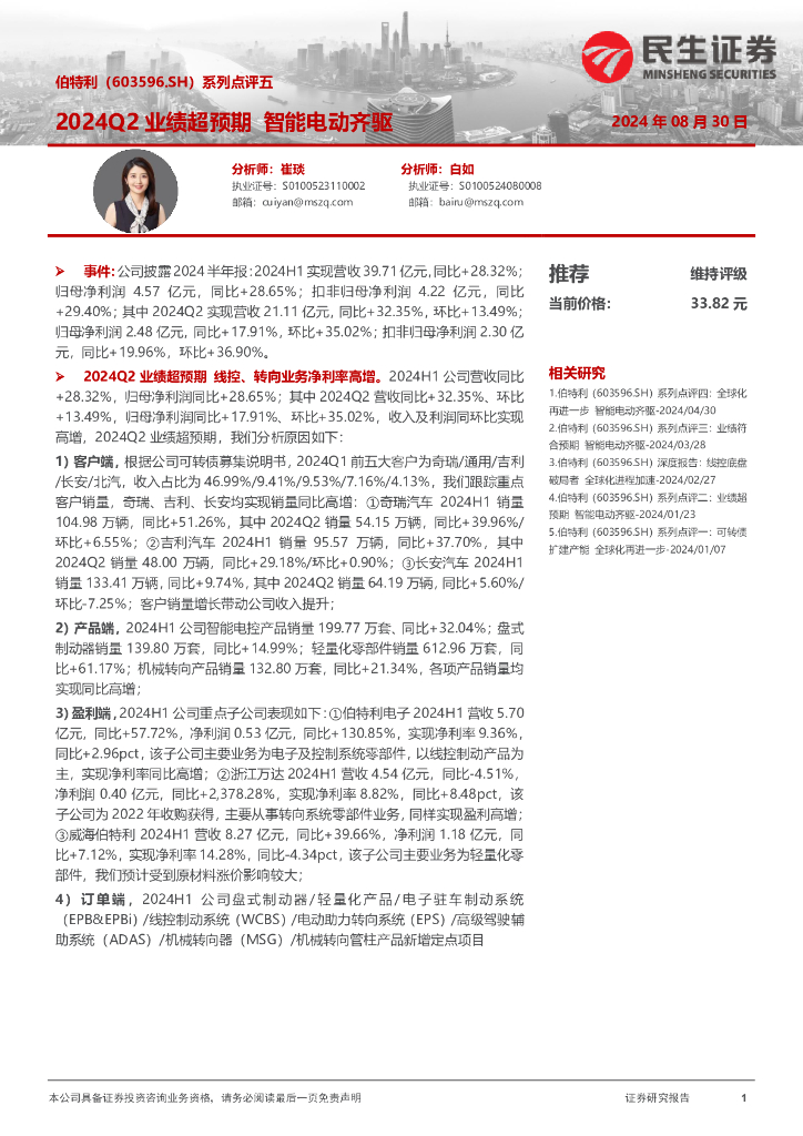 民生证券:伯特利(603596)-系列点评五:2024Q2业绩超预期智能电动齐驱.pdf