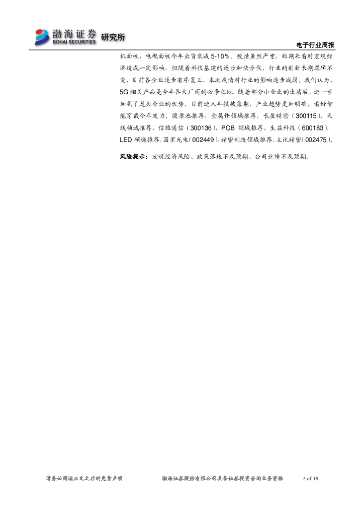 渤海证券:电子行业周报:华为推出智慧屏X65,引领中高端智能电视.pdf