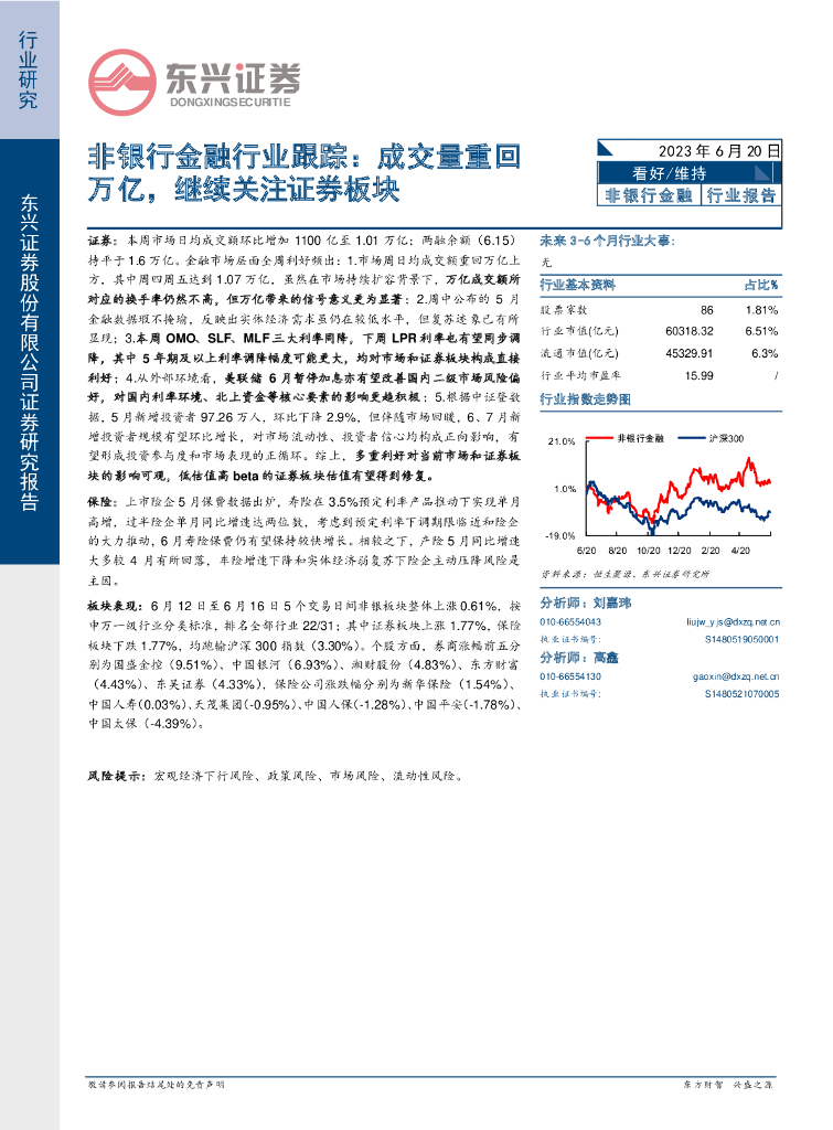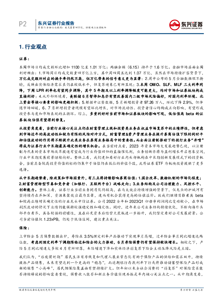 东兴证券:非银行金融行业跟踪:成交量重回万亿,继续关注证券板块.pdf